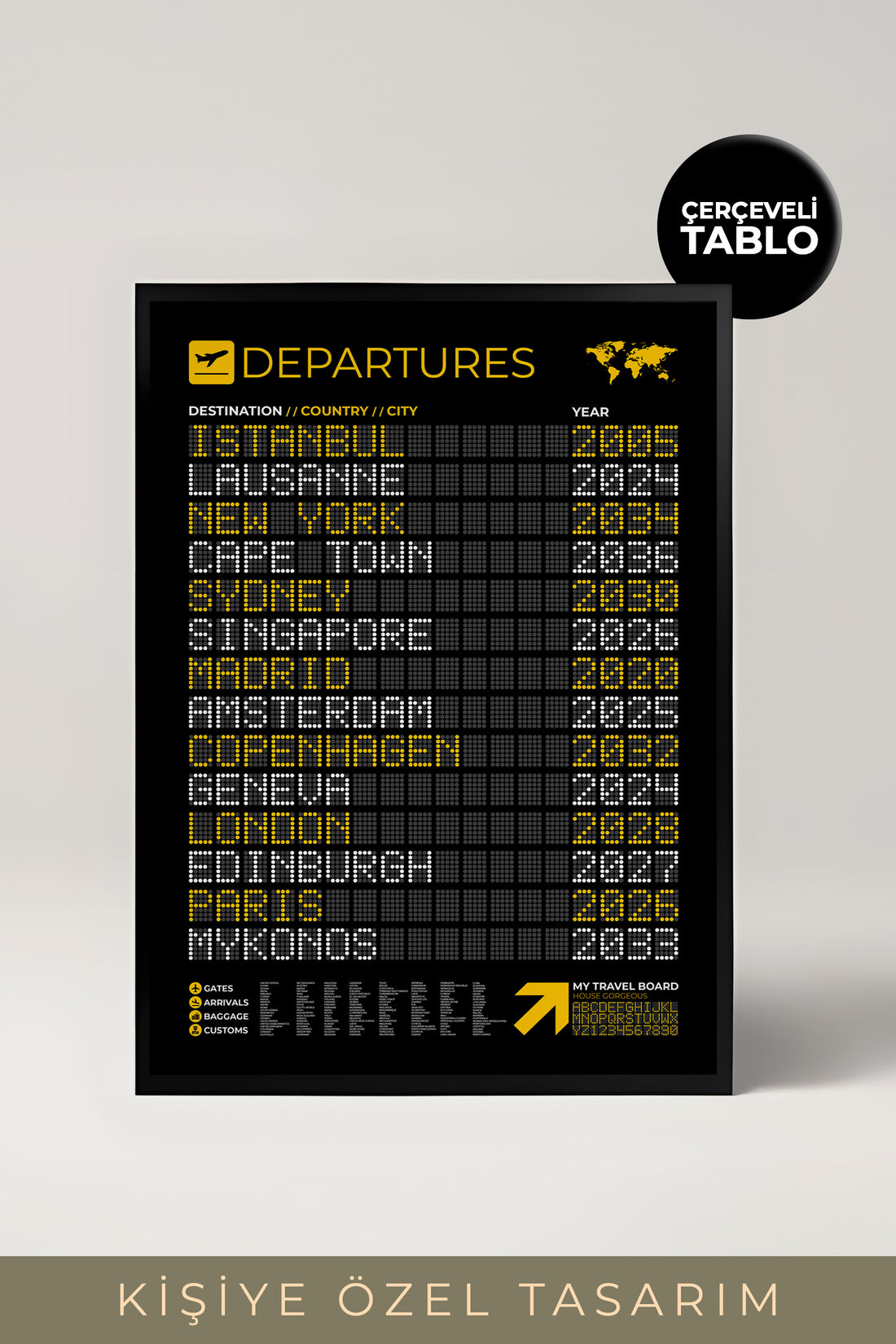 Kişiye Özel Seyahat Panosu Tasarımlı Çerçeveli Tablo