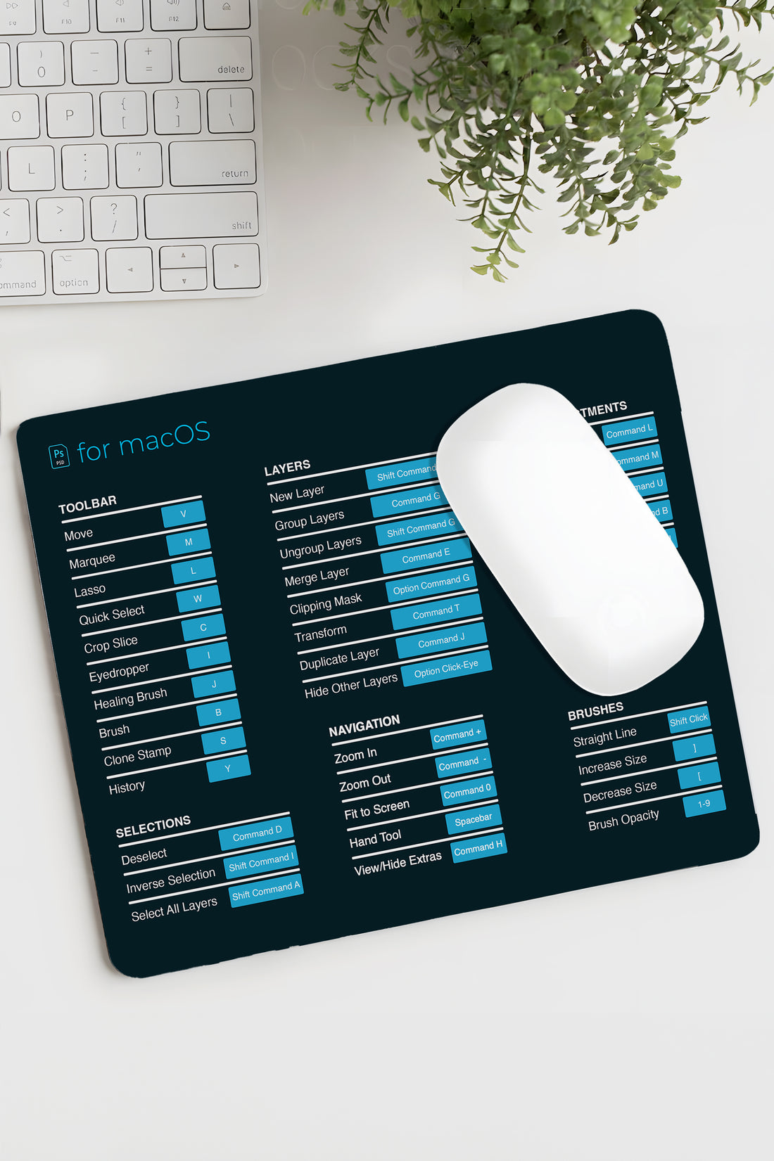 Photoshop Shortcuts macOS PSD Tasarımlı 18x22cm Baskılı Mousepad